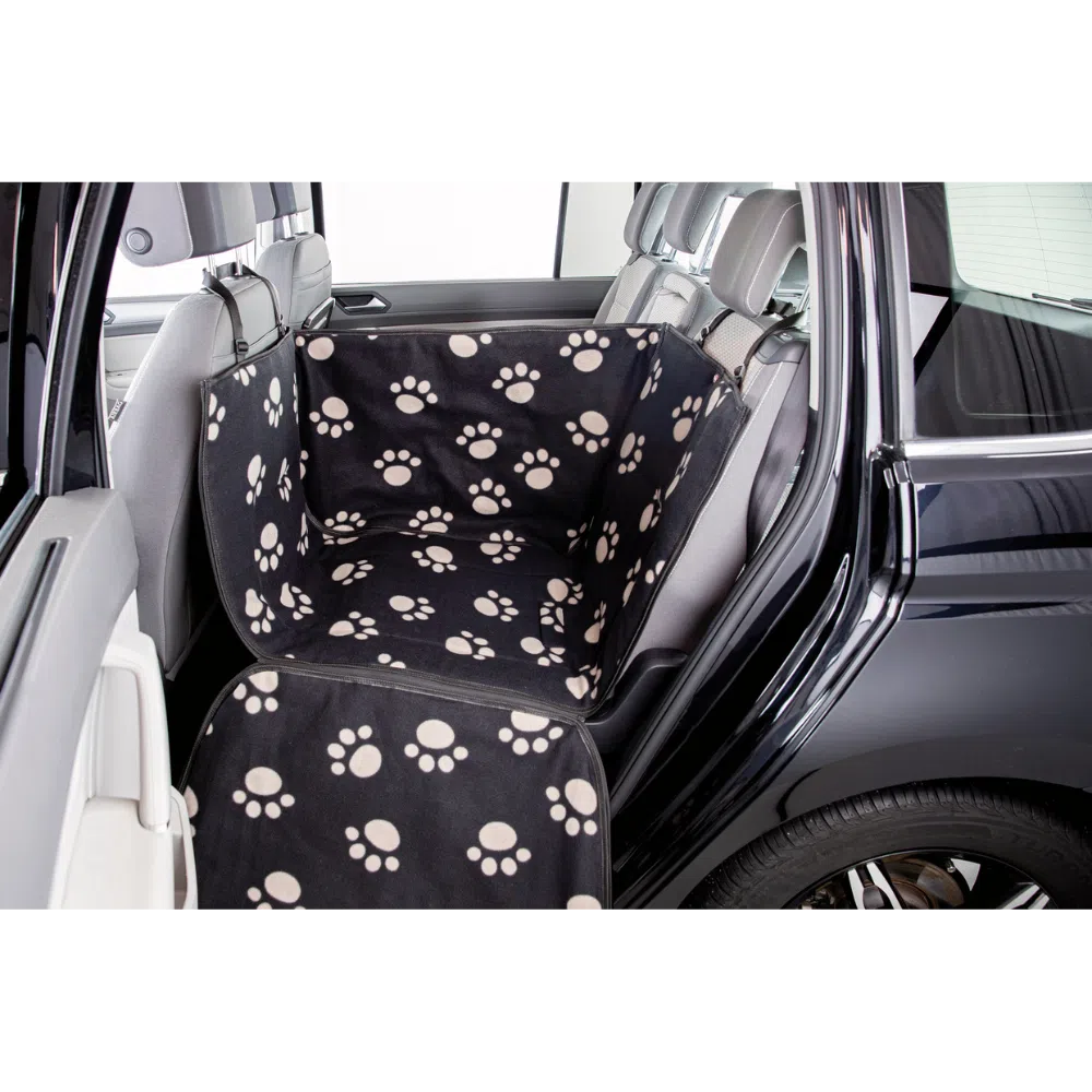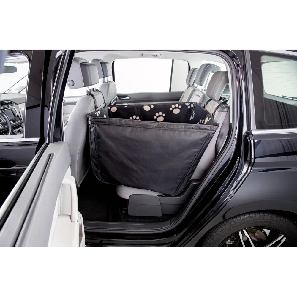 Trixie bilsædetæppe m. høje kanter beskytter bagsædet af din bil samt ryglænet af forsædet. Den smalle version gør det muligt for en person at sidde på bagsædet sammen med hunden, hvis hele familien skal på tur.